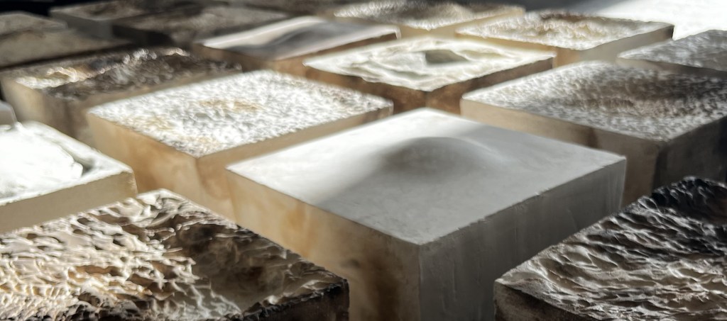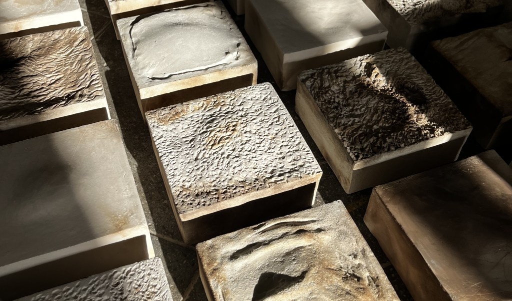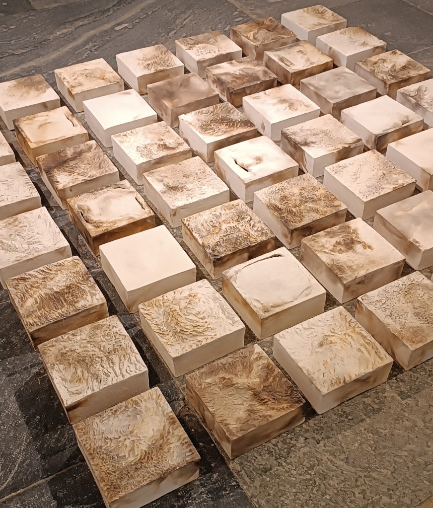 Triptyques – 3 carrés de 20 x 20 x 8 cm + socle